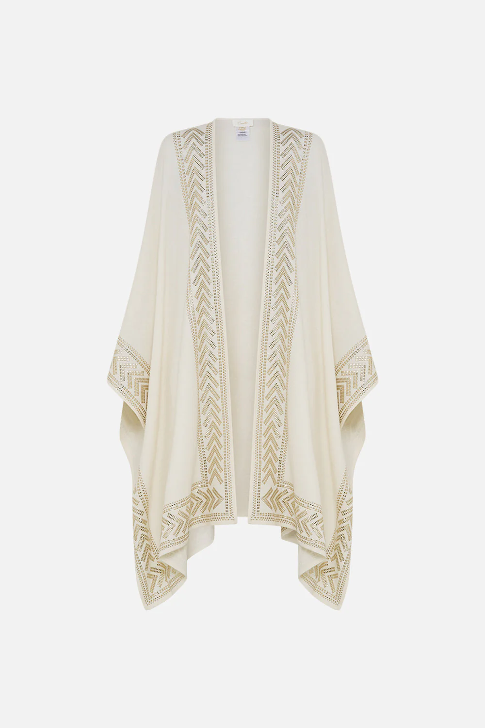 The Valley Of The Queens Throw Over emulates a world of sacred symbols etched amongst a canopy of luscious fronds, regal wings and ancient deities. This luxury knit throw over plays host to a wrap-style silhouette that falls into a midi handkerchief hem, CAMILLA crystal embellishments, jacquard accents and a relaxed cut that slips on effortlessly. Lavish layering at its best, this oversized open cardigan makes for opulent outerwear for any occasion.. Explore more from the House Of The Sun collection.