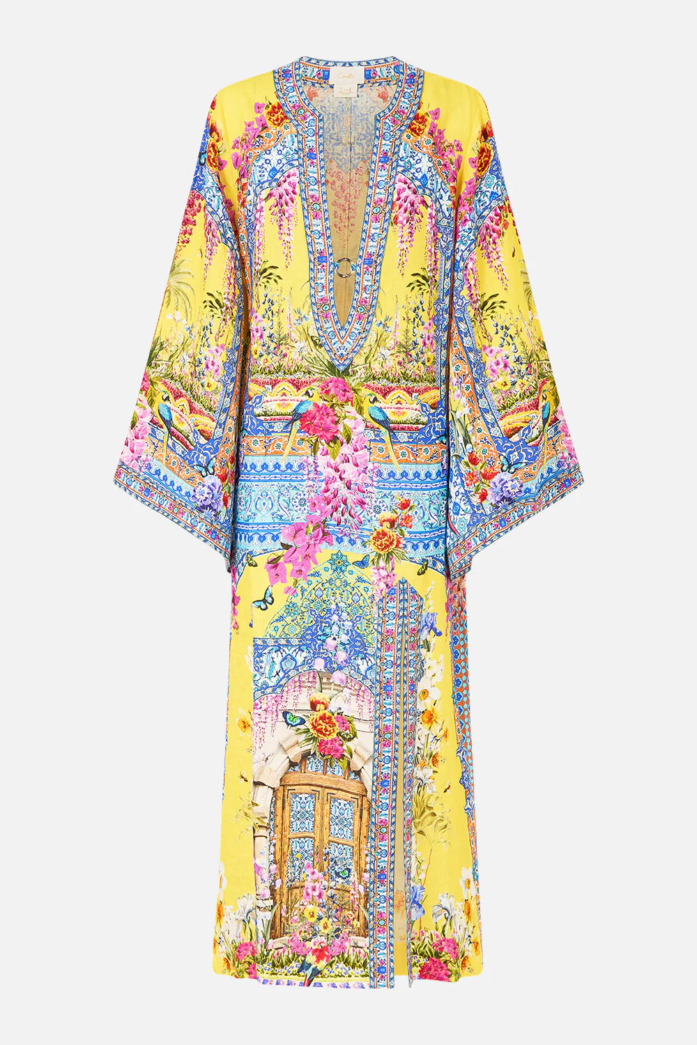 The Sultanahmet Summer Deep V-Neck Hardware Kaftan is a handcrafted linen silhouette designed by our in house artisans. Reimagined in an exclusive limited edition print, our longline kaftan exhibits a dramatic plunging V neckline accented with bespoke hardware. Relaxed fitting, adorned with generously flared sleeves and leg split for effortless movement and allure.