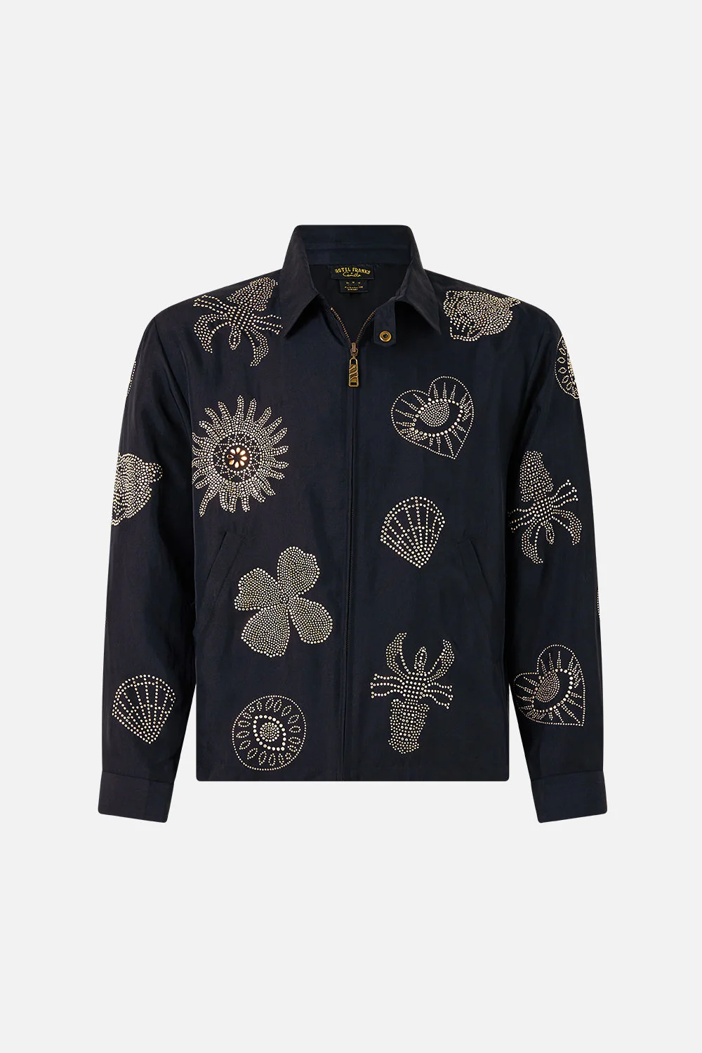 The Amulets And Alchemy Embellished Crop Zip Through Jacket is a handcrafted silhouette designed by our in house artisans. Reimagined in an exclusive limited edition print, this HOTEL FRANKS BY CAMILLA jacket is cut in a relaxed, cropped fit with adjustable side tabs for versatility. It features embellishments all over for decadent detail and is thoughtfully finished with an invisible front zipper and adjustable cuffs for effortless wear.
