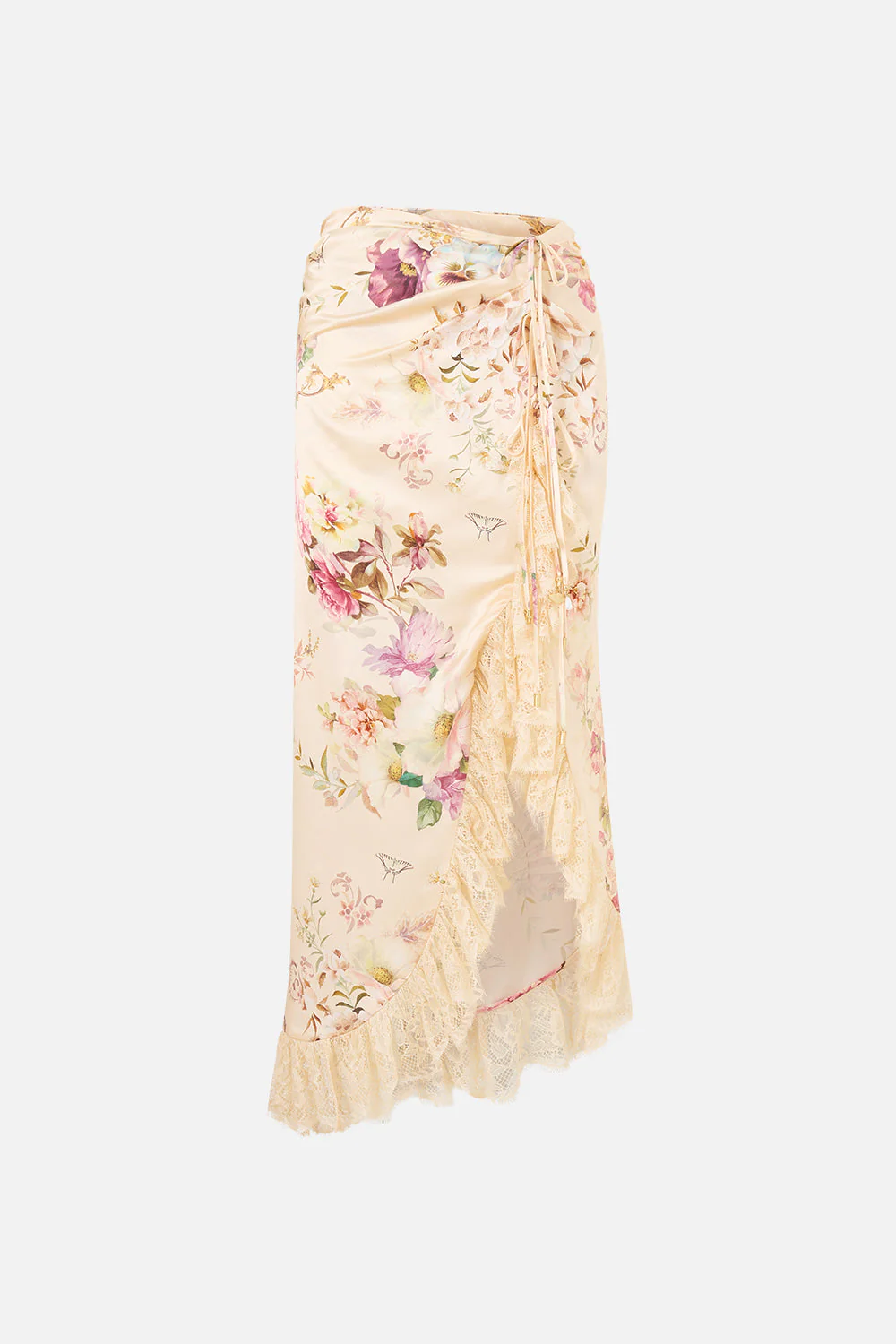 WRAP TIE SKIRT WITH RUFFLE ADORNED IN ARANJUEZ