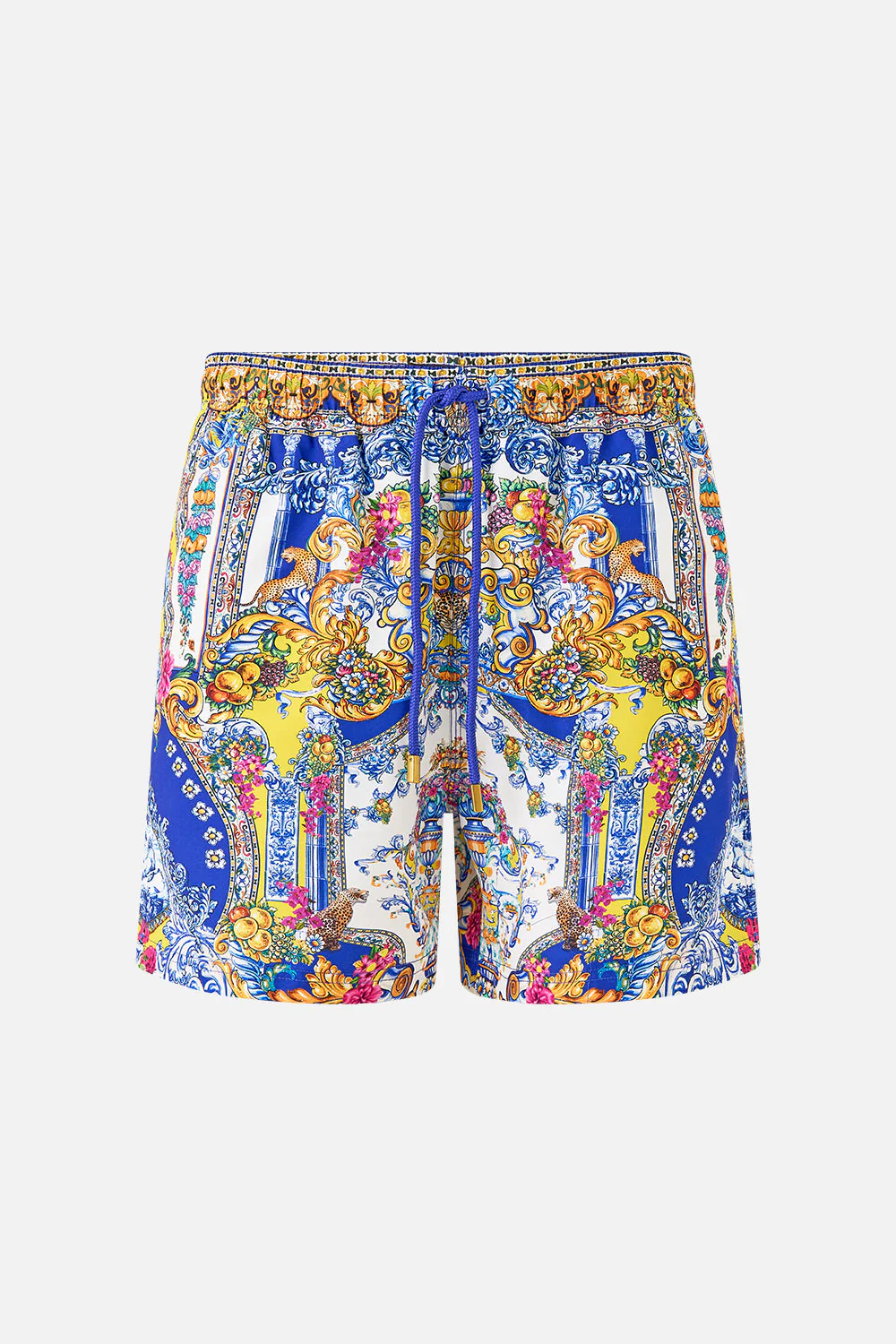 The España Nirvana Mid Length Boardshort With Elastic Waist has been handcrafted by our in-house artisans. Designed in an exclusive limited edition print, our men's boardshorts are consciously crafted from 100% recycled materials. Finished with an elasticated drawstring waist, adjustable ties ensure a relaxed yet bespoke fit that slightly tapers at the hemline.