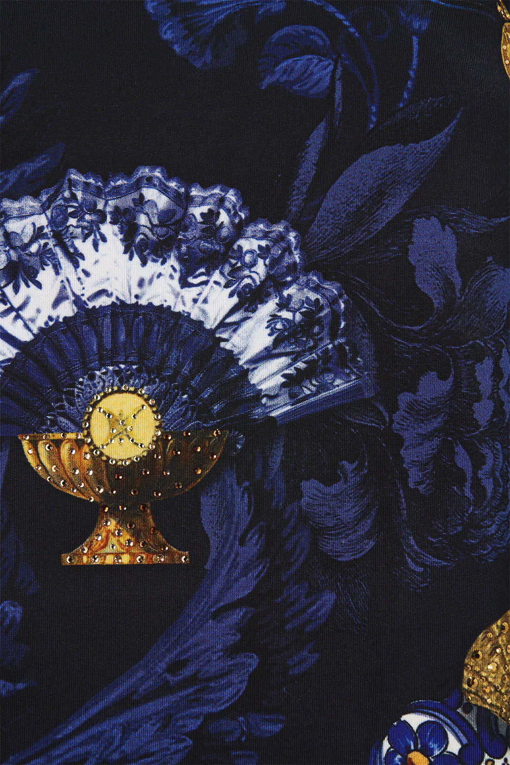 The Notes From The Blue Room Draped Split Sleeve Top is a handcrafted silhouette designed by our in-house artisans. Envisioned in an exclusive limited edition print, this knitted tee is thoughtfully cut into a relaxed fit. Decadently draped and double layered, this elevated essential is finished with a classic round neckline and intricately applied crystal embellishment.